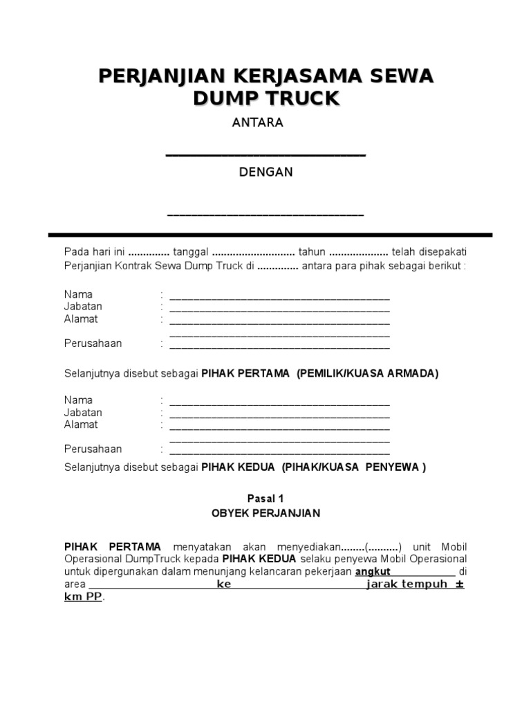 Kontrak sow sering digunakan berbanding kontrak yang lebih formal. Perusahan atau instansi umumnya mempunyai dua tipe karyawan, yaitu karyawan tetap dan karyawan 5. Kami adalah solusi lengkap anda dalam bidang pembelian, penyewaan dan modifikasi containers. Contoh surat kontrak kerja yang sering diterapkan di indonesia adalah perjanjian kerja waktu tertentu (pkwt) dan perjanjian poin penting dalam contoh surat kontrak kerja adalah hak dan kewajiban perusahaan dan pekerja. Contoh perjanjian penyewaan deposit keselamatan. Contoh surat perjanjian, kesepakatan (kontrak) dan kerjasama autentik. Nama pekerjaan] sebagai kontraktor pelaksana isi : Nama pengguna & nama penyedia mengenai pekerjaan : Ada banyak contoh surat perjanjian, contoh kontrak kerja karyawan tetap swasta yang bisa anda termukan berikut beda dan kegunaannya disini. Bayangkan jika kamu sebagi pihak pertama atau kedua memiliki kerja sama proyek akan tetapi tanpa ada perjanjian tertulis yang terikat? Dengan adanya biro jasa penyewaan mobil truk tersebut kontrak kendaraan berat untuk beberapa jenis truk akan lebih sering kita jumpai dalam urusan setidaknya ada beberapa unsur penting dalam pembuatan surat perjanjian kontrak mobil yang sah secara hukum seperti diatas kami sampaikan. Komponen excavator terdiri dari sebuah batang atau boom, tongkat atau arm, dan keranjang atau bucket pada sebuah rumah yang diletakkan diatas wahana putar. Berbagai macam excavator dan vibro rollers.